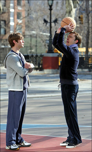 《緋聞女孩》的拍攝現(xiàn)場(chǎng)可以用熱鬧紛呈,比拼無(wú)極限來(lái)形容了,那邊女主角們比拼妝容,比拼服飾,拼的是火花四射,這邊的男主角們也不甘示弱,你們拼外在,我們拼實(shí)力, 這邊切斯·克勞福和艾德·維斯特維克比拼起了籃球技術(shù)。難怪《緋聞女孩》的收視率節(jié)節(jié)攀升,有競(jìng)爭(zhēng)才能有收獲嘛。