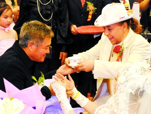 趙本山以“洋徒弟”博比·肯父親的身份致辭,并接受了新人斟上的“師傅茶”。昨日上午,趙本山在京出席了烏克蘭籍徒弟博比·肯和《劉老根》副導演張雯婷的婚禮!拌尮男,鞭炮齊鳴,紅旗招展,人山人海!庇眯∑贰缎〈拚f事》中的經(jīng)典臺詞形容昨日的婚慶現(xiàn)場再合適不過。趙本山從東北帶來了腰鼓隊和嗩吶手為婚宴助興,并親自為舞獅隊中的龍獅點睛。面對30桌賓客,趙本山豪爽宣布:“今天沒帶什么禮物,所有吃喝我都買單了!庇浾 郭延冰 勾伊娜 實習生吳丹 攝影報道