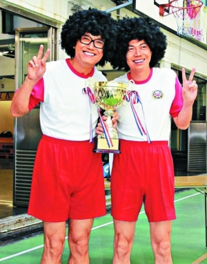 51歲的苗僑偉和41歲的謝天華前日在一間小學(xué)續(xù)拍無線新劇《老公萬歲》,二人為了搞笑戲分,不惜自毀形象,穿著運(yùn)動(dòng)校服配爆炸頭出鏡,謝天華更提議與苗僑偉將褲頭拉高束腰,“越薯(粵語指傻里傻氣)越好”。兩人在《學(xué)警狙擊》中的“Laughing哥”和“孝哥”角色都以型男著稱,這次自拆招牌,兩人不但不擔(dān)心形象受損,謝天華還搞笑地表示,“我還擔(dān)心粉絲更多了呢!”苗僑偉透露戲中尚有多個(gè)搞笑造型,比這個(gè)爆炸頭更出彩,希望能帶給觀眾驚喜。