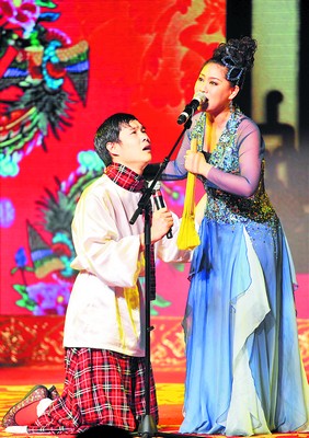 不知是“生產(chǎn)快樂”的口號起了作用,還是趙本山的人緣太好,總之,在這個二人轉(zhuǎn)的大日子里,張藝謀、馮小剛、郎昆等不同領(lǐng)域的名導(dǎo)齊齊捧場;成龍、宋祖英、那英、姜文、葛優(yōu)等一線大腕均盛裝出席;國內(nèi)電視臺的“名嘴”更是無一缺席:楊瀾、竇文濤、倪萍、白巖松等圈內(nèi)大腕的道賀,令當(dāng)晚的劉老根大舞臺的明星陣容堪比國內(nèi)任意一屆頒獎典禮。成龍首次舞著扇子出場,戲言:“能上劉老根大舞臺,也是我的夢想,不過我只能跑龍?zhí),他們的嘴太快了,我普通話不行!币恢痹谛麚P傳承中國傳統(tǒng)文化的成龍稱有300年歷史的“二人轉(zhuǎn)”是“世界的寶物”:“古老的中國藝術(shù)都要保留,這不止是我們的,它是世界的寶物!痹凇皠⒗细笪枧_”南邊,距離不到一公里的地方就是德云社劇場,同樣都是曲藝表演的熱點人物的郭德綱也來湊熱鬧,“好事呀,街坊開張我來慶祝。我來倒點他的票出去賣!眴柕搅思磳㈤_業(yè)的“劉老根大舞臺”對德云社的演出是否有影響時,郭德綱的回答也很干脆,“非常歡迎二人轉(zhuǎn)來北京,如果劉老根大舞臺對肯德基、麥當(dāng)勞沒影響,那對我們也沒影響。”