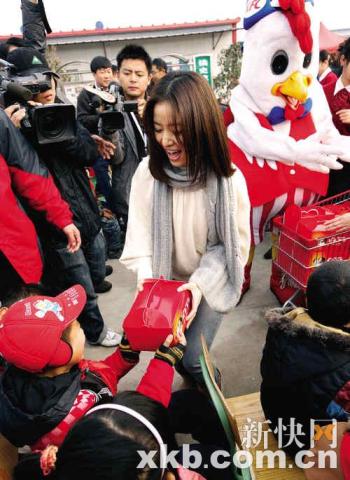 近日,作為愛(ài)心大使的林心如親赴四川地震災(zāi)區(qū),將一份份包括牛奶和面包的愛(ài)心營(yíng)養(yǎng)餐包親手發(fā)給四川綿竹板房社區(qū)內(nèi)清平學(xué)校的310名小學(xué)生。