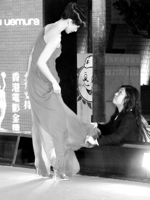 由于突如其來的風(fēng)雨,最近深受懷孕傳聞困擾的劉嘉玲和老公梁朝偉沒有走紅地毯,而是從后門悄然入場。昨晚紅地毯上唯一能與林志玲一爭長短的就只有湯唯了。湯唯昨晚選擇了一身華倫天奴的紅色曳地長裙,斜露單肩的設(shè)計(jì)頗有古希臘的風(fēng)韻。不過,即便對于身材高挑的湯唯來說,這條長裙也太長了點(diǎn)。她在紅地毯上一不留神,高跟鞋的鞋跟就踩住了裙擺,一時(shí)難以脫開。湯唯當(dāng)時(shí)表現(xiàn)得很鎮(zhèn)定,她一邊指指裙擺,向提問的記者表示歉意,一邊走到場邊,在工作人員的幫助下才讓高跟鞋擺脫了裙擺的糾纏。
