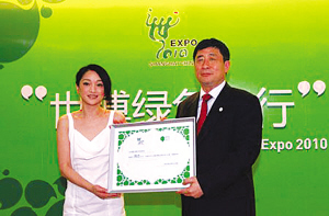 繼去年擔任“聯(lián)合國中國區(qū)首位親善大使”后,昨天周迅再度榮任上海世博會“綠色出行大使”,成為首位獲此榮譽的藝人。開始以雙重“大使”的身份,倡導低碳生活,為綠色出行獻上自己的一份力量。