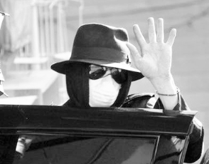 邁克爾·杰克遜3月13日被拍到“全副武裝”地去皮膚診所。