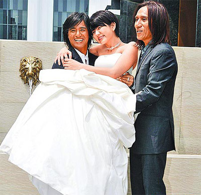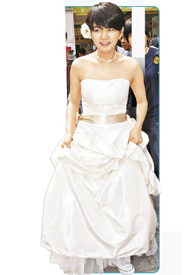 中新網(wǎng)3月20日電 Ella昨穿婚紗為師兄動(dòng)力火車新歌《愛到瘋癲》拍MV,27歲的她毫不客氣緊貼尤秋興,稱被他的“電眼”電暈,還相約若她37歲沒嫁出去,他就娶她,最后他更一把將她抱起,已婚的顏志琳完全被晾在一旁。