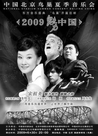 繼悉尼歌劇院獨(dú)唱音樂會、維也納金色大廳獨(dú)唱音樂會、美國獨(dú)唱音樂會后,6月30日,宋祖英將攜手多明戈、郎朗、周杰倫在國家體育場“鳥巢”一同演繹《魅力·中國》。