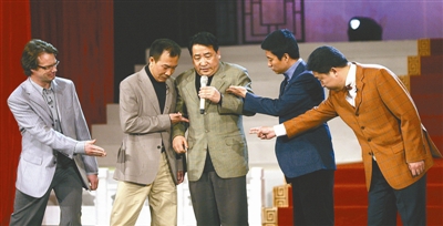 昨天的語言類節(jié)目終審地點(diǎn)從五棵松的影視之家移師到央視轉(zhuǎn)播廳,現(xiàn)場觀眾人數(shù)比原來增加不少,可以檢驗(yàn)每個(gè)節(jié)目的“笑果”。經(jīng)過數(shù)小時(shí)的挨個(gè)過堂,據(jù)相關(guān)人士透露,11個(gè)節(jié)目基本上悉數(shù)過關(guān)。之前,與姜昆有關(guān)的三個(gè)作品《大拜年》、對口相聲《我暈》、群口相聲《新五官爭功》昨天有兩個(gè)順利過關(guān),對于62個(gè)相聲演員合作的“大合唱”《大拜年》沒能通過審查。