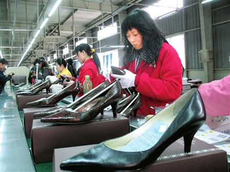 昨天下午,記者來到位于武侯區(qū)簇橋簇馬工業(yè)園成都依百蘭鞋業(yè)。工廠內四條生產(chǎn)線正加足馬力生產(chǎn)Bandolino的訂單,其中一條流水線上生產(chǎn)的,正是奧巴馬夫人穿的那款鞋。