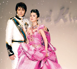 昨天的安德烈·金時(shí)裝秀,堪稱是一場唯美的視覺盛宴。在漫天飛雪中,張娜拉與8位模特身穿猶如百花綻放般五彩紛呈的禮服亮相,獻(xiàn)上了帶有濃濃春意的“春裝秀”。隨后,張娜拉攜手金俊分別身披晚禮服、宮廷禮服以及公主和王子服等8套禮服一次次走上秀臺(tái)。