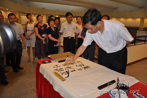 廣東華僑博物館館長王明惠向劉昆匯報了廣東華僑博物館籌建籌展情況,介紹廣東華僑歷史陳列主題展、廣東華僑民居展和館藏文物展的主要內(nèi)容。劉昆充分肯定廣東華僑博物館籌建籌展水平,表揚省僑辦領(lǐng)導重視辦好廣東華僑博物館,博物館工作人員全力以赴,精心做好籌展工作,并欣然為廣東華僑博物館題詞“弘揚華僑精神,建設(shè)文化強省”。(葉欣)