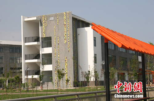 新北川中學(xué),總建筑面積達(dá)7.2萬平方米,可供5200名學(xué)生學(xué)習(xí)和寄宿,按抗震烈度八度設(shè)計(jì),總投資2億元人民幣。記者漫步校園發(fā)現(xiàn),新校園的色彩以黑白灰為主,色塊拼成的彩帶點(diǎn)綴其間,質(zhì)樸、寧靜,不失活潑。