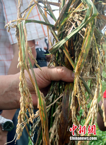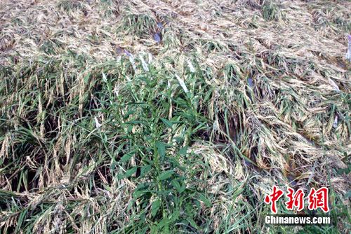 記者在當(dāng)?shù)厮,大片成熟晚稻依然泡在水中。拔起一株看見谷穗已?jīng)發(fā)芽。隨行的中國熱帶科學(xué)院專家分析說,這樣的稻谷人已無法食用,唯有趕緊翻地準(zhǔn)備下一季生產(chǎn)。