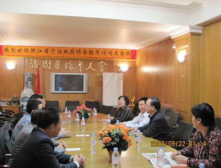 在法國期間,訪問團拜訪了法國華僑華人會,F(xiàn)任主席陳勝武及副主席張過祥、陳其躍等負責(zé)人,熱情接待了訪問團,相互進行了座談;訪問團還參觀了位于巴黎市中心四區(qū)的會所、文化中心,及中華文化學(xué)校。通過座談參觀,訪問團了解到,近年來,隨著中國國力迅速增長,旅法華人地位不斷提高,華人也在改變過去不關(guān)心政治的慣例,正在努力融入當(dāng)?shù)刂髁魃鐣TL問團與法國華僑華人會互贈了禮品;法國歐華歷史學(xué)會會長葉星球還向訪問團贈送了其撰寫的《法國華人三百年》一書。