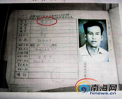陳良維說,經(jīng)過查詢父親檔案,父親原來在馬來西亞生活時,名字叫李燕鴻(音),1915年6月出生于馬來西亞馬六甲,祖籍福建,從祖代起在馬來西亞馬六甲定居。在他原來的家族里,父親陳亞九(李燕鴻)共有親兄弟6人,他在家中排行第三,在馬來西亞的親人上有兩個大哥、下有3個弟弟,大哥做工、二哥捕魚、四弟做橡膠買賣,五弟和六弟當(dāng)司機。家里有樓房和商鋪,還有其它產(chǎn)業(yè),父親陳亞九出生時祖父就已去世。原來的家庭住址為馬來西亞檳城大車路71B。