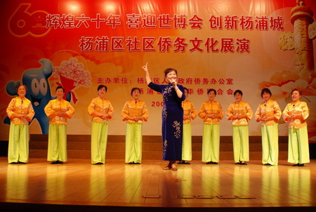 中新網(wǎng)10月26日電 10月21日下午,“輝煌六十年喜迎世博會創(chuàng)新楊浦城”——上海市楊浦區(qū)社區(qū)僑務文化展演活動在楊浦區(qū)文化館舉行。上海市僑辦副主任陳文佳,副區(qū)長馬杰富,區(qū)委統(tǒng)戰(zhàn)部副部長、區(qū)政府僑辦主任胡耀良,區(qū)僑聯(lián)主席曹國強等出席活動。社區(qū)歸僑僑眷及(僑界人士)代表近500人參加活動。