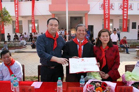 中新網(wǎng)11月4日電 據(jù)江西僑聯(lián)網(wǎng)站消息,2009年10月31日上午,江西省吉安市青原區(qū)富田鎮(zhèn)坪田小學(xué)鑼鼓陣陣,鞭炮長鳴,五顏六色的彩旗迎風(fēng)飄揚,同學(xué)們穿上了節(jié)日的盛裝,戴上鮮艷的紅領(lǐng)巾,臉上露出了燦爛的笑容,雙手興高采烈地揮舞著美麗的鮮花,熱烈慶!凹訍蹆S心小學(xué)”的落成。
