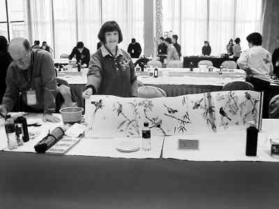 國際友人對筆會也是情有獨鐘。來自澳大利亞的博理查和宣月,已跟中國老師林伯墀學(xué)中國畫達(dá)10年之久。林老師讓宣月不但學(xué)中國畫,還要學(xué)更多的中國文化。她這次來想通過參與交流,開闊視野,取長補(bǔ)短,使自己的繪畫藝術(shù)再上一層樓。她還高興地展示了自創(chuàng)的花鳥畫集,并和博理查向藝術(shù)節(jié)敬獻(xiàn)了現(xiàn)場創(chuàng)作的“鮮花綻放圖”和“袋鼠翹首觀望圖”。來自美國西雅圖的畫家,把自己創(chuàng)作的一幅長達(dá)十幾米、影響類似中國《清明上河圖》的《西雅圖美景》大畫贈給了華人文化藝術(shù)節(jié)組委會,感動了在場的海內(nèi)外僑胞。