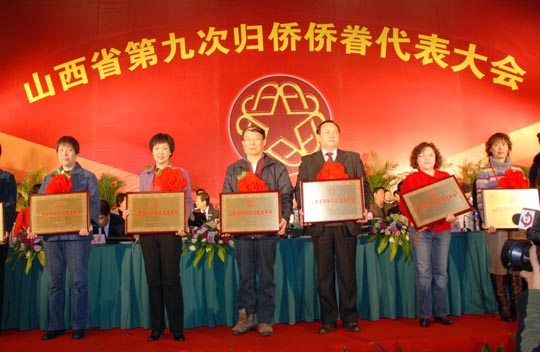 在開(kāi)幕式上,張寶順、王君、薛延忠和王永樂(lè)對(duì)山西省外事僑務(wù)辦公室、山西省僑聯(lián)聯(lián)合表彰的四十九名全省歸僑僑眷先進(jìn)個(gè)人,山西省僑聯(lián)表彰的十個(gè)全省僑聯(lián)系統(tǒng)先進(jìn)集體和二十五名全省僑聯(lián)系統(tǒng)先進(jìn)個(gè)人頒發(fā)獎(jiǎng)狀。