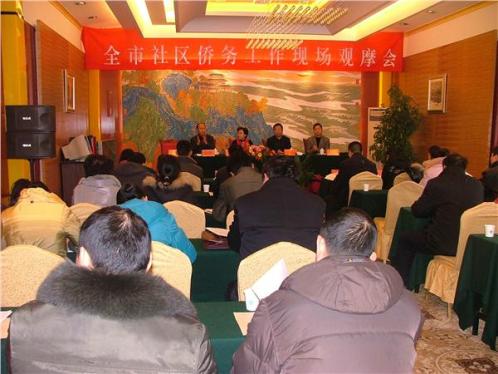 會(huì)議上,連云港市僑辦主任劉娟簡要通報(bào)了2009年以來全市社區(qū)僑務(wù)工作,并表示,召開全市社區(qū)僑務(wù)工作現(xiàn)場觀摩會(huì),目的是深入貫徹落實(shí)科學(xué)發(fā)展觀和《省民政廳、省僑辦<關(guān)于進(jìn)一步加強(qiáng)全省社區(qū)僑務(wù)工作的意見>》會(huì)議精神,結(jié)合該市融入江蘇沿海開發(fā)的戰(zhàn)略部署,堅(jiān)持全面推進(jìn)社區(qū)僑務(wù)工作建設(shè),積極營造爭先創(chuàng)優(yōu)的濃厚氛圍,提高為僑服務(wù)、為大局服務(wù)的能力和水平,促進(jìn)社區(qū)全面建設(shè)和協(xié)調(diào)發(fā)展,為和諧社會(huì)建設(shè)添磚加瓦。