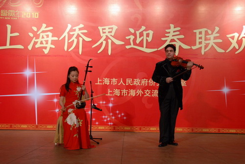 聯(lián)歡會上,中外藝術家劉子楓、李軍、陳妤穎、段皚皚、馬克西姆、孟錦惠等還為僑界人士表演了精彩的節(jié)目。