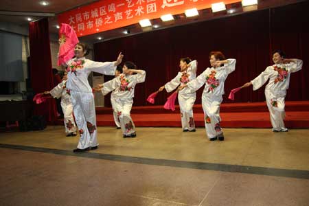 據(jù)藝術(shù)團(tuán)團(tuán)長周玉萍介紹,“僑之聲”藝術(shù)團(tuán)成立四年來,始終堅持以僑為本、為僑服務(wù)的工作理念。在大同市僑聯(lián)的正確領(lǐng)導(dǎo)下,經(jīng)常下基層以文藝的形式宣傳《僑法》、慰問僑胞,僅2009年參加的全國和省市舉辦的文藝活動達(dá)6場,并獲得有關(guān)部委的表彰。在新中國成立60周年之際掀起的大唱“紅歌”活動中,藝術(shù)團(tuán)為基層演出并現(xiàn)場輔導(dǎo)更是高達(dá)20多場。領(lǐng)導(dǎo)的支持、政治上的鼓勵極大的帶動了歸僑僑眷的工作熱情。