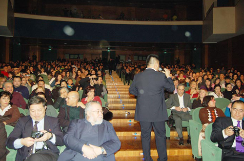 接著,由空軍政治部文工團組成的“親情中華”藝術(shù)團的藝術(shù)家們?yōu)榇蠹冶硌萘司实奈膴使?jié)目,龐妮娜和楊帥表演的舞蹈令觀眾耳目一新,特別是他們所表現(xiàn)出來的扎實的基本功令在場的意大利觀眾驚嘆不已;當田毅走上觀眾席,“真朋友”的歌聲在每個人的身邊響起時,懂中文的觀眾向意大利友人傳遞著友情。梁召今獨唱的意大利語民歌“我的太陽”一曲震驚全場,掌聲如雷。