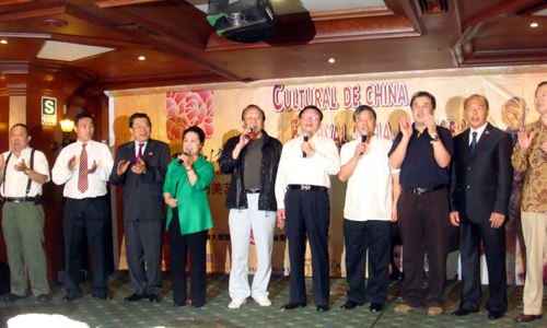 在歡迎會(huì)上,來(lái)自祖籍國(guó)的藝術(shù)家和秘魯當(dāng)?shù)氐娜A人文藝愛好者一起表演了精彩的節(jié)目。最后,在趙五一、馬儒沛和通惠總局三位主席的帶領(lǐng)下,全體與會(huì)者一起高唱《歌唱祖國(guó)》,并預(yù)祝“四海同春”在秘魯?shù)难莩霁@得成功。(劉以謙)