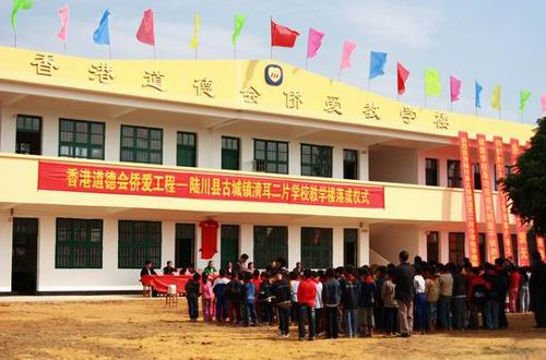 通過廣西自治區(qū)僑辦牽線搭橋,捐助支持廣西各項(xiàng)公益事業(yè)的僑社和慈善團(tuán)體中,香港道德會(huì)較為突出。香港道德會(huì)是香港有名的慈善機(jī)構(gòu),2009年先后在廣西欽州市欽南區(qū)新營(yíng)村、賀州市八步區(qū)東南村、岑溪市地麻村、陸川縣清耳村等地,捐建4所小學(xué),捐贈(zèng)總額達(dá)172萬元人民幣。這些受捐建的小學(xué)有個(gè)響亮的名字:“香港道德會(huì)僑愛教學(xué)樓”。