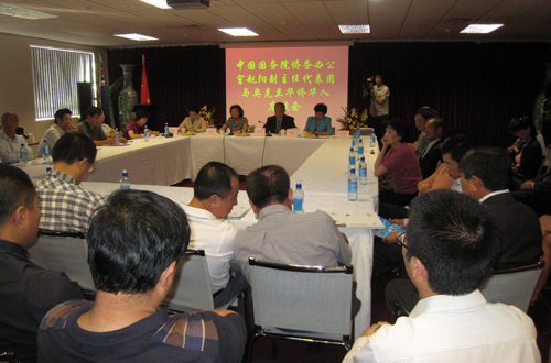 與奧克蘭華僑華人各界人士的座談會在中國駐奧克蘭總領(lǐng)館舉行,由總領(lǐng)事廖菊華主持,當(dāng)?shù)貎S團(tuán)、僑校、僑報負(fù)責(zé)人及專家學(xué)者等約50人與會,大家就共同關(guān)心的奧克蘭華僑華人群體的變化與問題研究、華僑華人身份與國籍問題、僑胞權(quán)益保護(hù)、華文教育與弘揚中華文化、和諧僑社建設(shè)及促進(jìn)中外各領(lǐng)域交流和中國和平統(tǒng)一大業(yè)等,廣開思路、暢所欲言,深入交換看法和意見,積極為海外僑務(wù)工作的科學(xué)發(fā)展建言獻(xiàn)策。