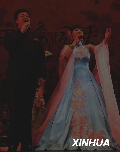 2月28日,著名歌唱家殷秀梅(右)、呂繼宏在新西蘭奧克蘭舉行的“文化中國·四海同春”慰?jī)S文藝演出上聯(lián)袂演唱。