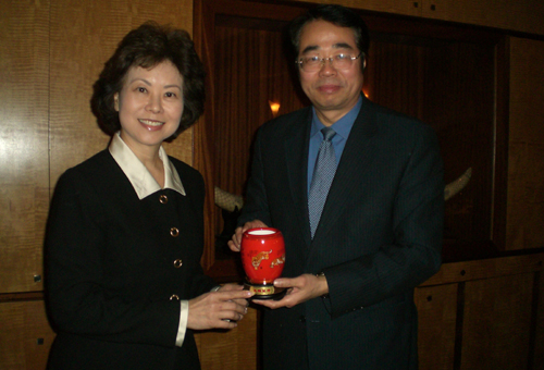 中新網(wǎng)3月2日電 2月28日中午,率“文化中國 四海同春”藝術(shù)團在美東地區(qū)訪演的國務院僑辦副主任許又聲在駐紐約總領事彭克玉及夫人陪同下,應邀出席了前美國勞工部長趙小蘭及其父親趙錫成博士舉行的午宴。