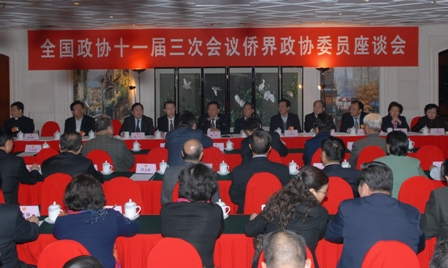 中新網(wǎng)3月8日電 據(jù)中國僑聯(lián)網(wǎng)站消息,3月6日,中國僑聯(lián)在首都大酒店召開全國政協(xié)十一屆三次會議僑界政協(xié)委員座談會,中國僑聯(lián)主席林軍主持座談會,副主席董中原、王永樂、喬衛(wèi)、李昭玲、雪克萊提•扎克爾等以及顧問林兆樞、林明江出席。與會人員歡聚一堂,暢言兩會熱點(diǎn),共議僑聯(lián)工作。