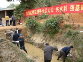 這次冬修水利勞動,是廣西壯族自治區(qū)僑聯(lián)積極響應(yīng)廣西壯族自治區(qū)黨委、自治區(qū)人民政府號召的一次主題實踐活動。當(dāng)日,一到勞動現(xiàn)場,廣西僑聯(lián)主席韋干身先士卒,帶頭跳入2米深的水渠里,帶領(lǐng)大家迅速投入到勞動中去。工地上,廣西僑聯(lián)會旗和“自治區(qū)僑聯(lián)攜手全區(qū)人民興水利,強基礎(chǔ),惠民生”橫幅迎風(fēng)飄揚,大家情緒高漲,干勁十足,有的鏟淤泥、搬石塊,有的鋤雜草、修整渠面……,有人身上濺滿了泥漿也全然不顧。