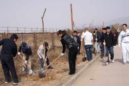中新網(wǎng)4月13日電 據(jù)中國(guó)僑聯(lián)網(wǎng)站消息,2010年4月9日,春風(fēng)和煦,綠柳輕搖,正是植樹的黃金時(shí)節(jié)。中國(guó)僑聯(lián)45名干部職工在中國(guó)僑聯(lián)副主席李祖沛的帶領(lǐng)下,赴河北省懷來縣官?gòu)d華僑農(nóng)場(chǎng)義務(wù)植樹。
