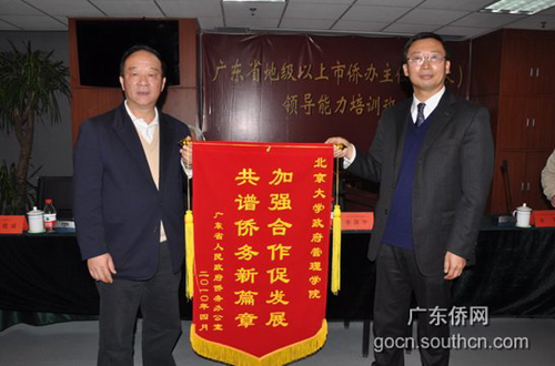 中新網(wǎng)4月23日電 據(jù)廣東僑網(wǎng)消息,4月22日上午,廣東省地級(jí)以上市僑辦主任(局長(zhǎng))領(lǐng)導(dǎo)能力培訓(xùn)班舉行結(jié)業(yè)典禮。原全國政協(xié)副主席、北京大學(xué)政府管理學(xué)院院長(zhǎng)羅豪才出席了結(jié)業(yè)典禮并與全體學(xué)員合影留念。