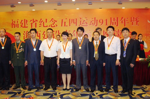 中新網(wǎng)5月6日電 據(jù)思明區(qū)僑聯(lián)消息,5月4日上午,在福建省紀(jì)念五四運動91周年暨海西建設(shè)青年標(biāo)兵座談會上,福建省廈門市思明區(qū)僑聯(lián)青委會會長、廈門鷺達眼鏡有限公司董事長、高級經(jīng)濟師張和輝榮獲由中共福建省委組織部、福建省公務(wù)員局(福建省人力資源開發(fā)辦公室)、共青團福建省委聯(lián)合頒發(fā)的第七屆“福建青年五四獎?wù)隆薄?table border=0 cellspacing=0 cellpadding=0 align=left>
