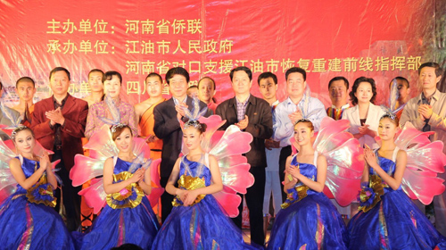 此次演出是在河南省對(duì)口援建江油的任務(wù)基本完成和由中國(guó)僑聯(lián)援建的北川中學(xué)即將竣工之際,河南省僑聯(lián)為了表達(dá)對(duì)援建、捐建四川地震災(zāi)區(qū)建設(shè)者的崇高敬意,組織近50名演員專場(chǎng)慰問演出。四川省僑聯(lián)從組織接待、提供用車、制定方案、聯(lián)絡(luò)協(xié)調(diào)、勘測(cè)場(chǎng)地、組織參觀、安全保障等給予了全方位的配合和支持。綿陽(yáng)市僑聯(lián)、江油外僑辦積極參與,組織有序,使2000多名援建工作者和當(dāng)?shù)厝罕姟W(xué)生觀看了演出,達(dá)到了慰問目的。(趙建中)