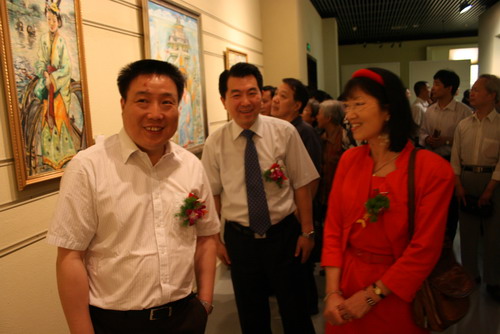 在丘林的陪同下,參加開幕式的市領(lǐng)導及來賓也饒有興致地參觀了畫展。