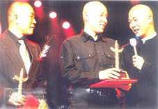 1999年度中國電影華表獎得主:主演《橫空出世》的李雪。ㄗ笠唬、主演《我的一九一九》的陳道明(中)獲得優(yōu)秀男演員獎。滿會喬
