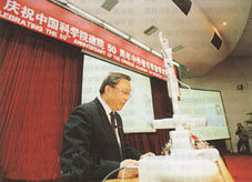 中國(guó)科學(xué)院院長(zhǎng)路甬祥在中科院五十周年紀(jì)念會(huì)上做[百年科學(xué)發(fā)展歷史回顧]的報(bào)告。 |