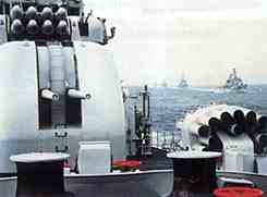 在水面艦艇方面,大陸主力艦隊有近40艘導(dǎo)彈護(hù)衛(wèi)艦和20艘驅(qū)逐艦,全部配備反艦巡航導(dǎo)彈。而預(yù)料幾年後從俄羅斯購買的現(xiàn)代級驅(qū)逐艦,其超音速的SS-N22反艦巡航導(dǎo)彈,將使臺灣艦艇無法招架。大陸的水面艦艇力量將繼續(xù)壯大,并提高其延伸作戰(zhàn)能力。這支軍隊將進(jìn)行更切合實際的軍事訓(xùn)練,并配備更先進(jìn)的反艦和防空導(dǎo)彈,以及電子戰(zhàn)設(shè)備。
