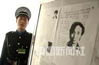 北京城鄉(xiāng)各處二十一日張貼公安機關簽發(fā)的通輯令,捉拿石家莊系列爆炸案的嫌犯靳如超,另一名為北京市通輯的第一號逃犯。中新社記者 賈國榮 攝
