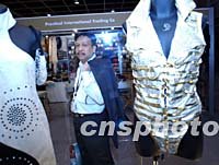 奧地利一家著名水晶生產(chǎn)商10日在香港參加「香港時(shí)裝節(jié)春夏系列2002」,展示設(shè)計(jì)師用晶瑩剔透的水晶裝飾服裝,以配合時(shí)下璀璨閃爍的時(shí)尚潮流。中新社圖 洪少葵 攝