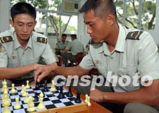 圖:解放軍駐港陸軍生活豐富多彩 2002年06月28日 20:31 ![]() 駐守香港新界的中國人民解放軍陸軍部隊除了軍事技術高超外,不少官兵還是國際象棋高手。任晨鳴 攝