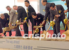 造價(jià)約港幣100億的九廣鐵路落馬洲支線動(dòng)土儀式一月九日在香港舉行。圖為主禮嘉賓主持動(dòng)土儀式。錢興強(qiáng) 攝