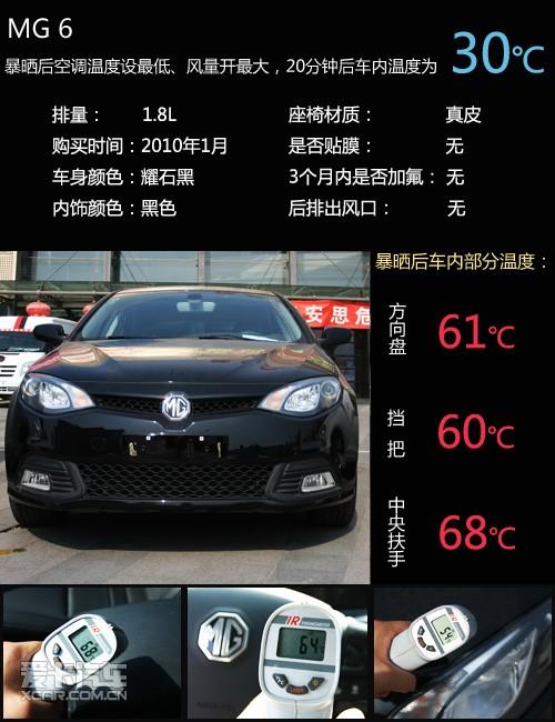內(nèi)外通黑沒有貼膜的MG6車身溫度達(dá)到54攝氏度,門把手微燙,開啟空調(diào)后車內(nèi)降溫速度沒有想象的迅速,要是有后排出風(fēng)口車內(nèi)溫度下降應(yīng)該會更加均勻。