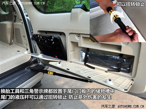 普拉多尾門的液壓桿可以通過扭轉進行鎖止,這樣可以有效防止因為誤關車門帶來的意外傷害,這個設計不需要太多成本但是非常體貼。而另一個小亮點是后備廂內的一個220V交流電源,接些小電器非常方便。