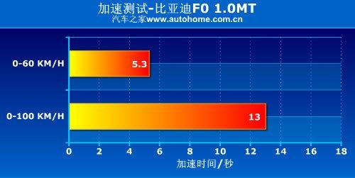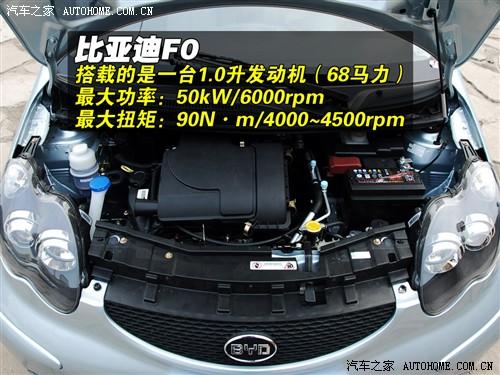 比亞迪F0搭載的是排量為1.0L的3缸全鋁發(fā)動(dòng)機(jī),最大功率為68馬力,最大扭矩90牛米,在國內(nèi)同級(jí)別的車型中,它的動(dòng)力性是比較出色的,0-100Km/h加速只用了13秒,在微型車中算是比較不錯(cuò)的成績了,但表現(xiàn)不佳的剎車成績讓人缺乏安全感。關(guān)于它詳細(xì)的測試,可以參考下面的文章: