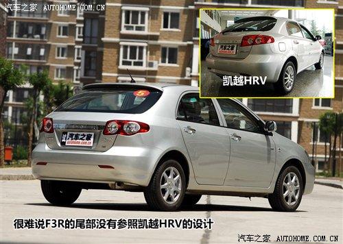 比亞迪F3的前臉與花冠也十分相似,大燈的形狀做了些小小的修改,尾燈則與上一代本田飛度三廂版的十分相像,個人覺得這款尾燈似乎與整體的平和中庸風格并不太搭調(diào),只是看的時間長了已經(jīng)習慣了。除此之外,F(xiàn)3的兩廂車型F3R的尾部造型也與上海通用別克已經(jīng)停產(chǎn)的凱越HRV具有九成的相似。
