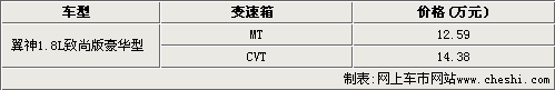 網(wǎng)上車市網(wǎng)站近日在東南三菱經(jīng)銷商處獲悉,新上市的三菱翼神1.8L致尚版共推出手動擋和CVT兩款車型,售價分別是12.59萬元和14.38萬元。據(jù)悉,目前很多4S店已經(jīng)有展車抵達,但消費者如果購買這款新車仍需交付5000元訂金預(yù)訂,預(yù)計一個月左右可以提到現(xiàn)車。